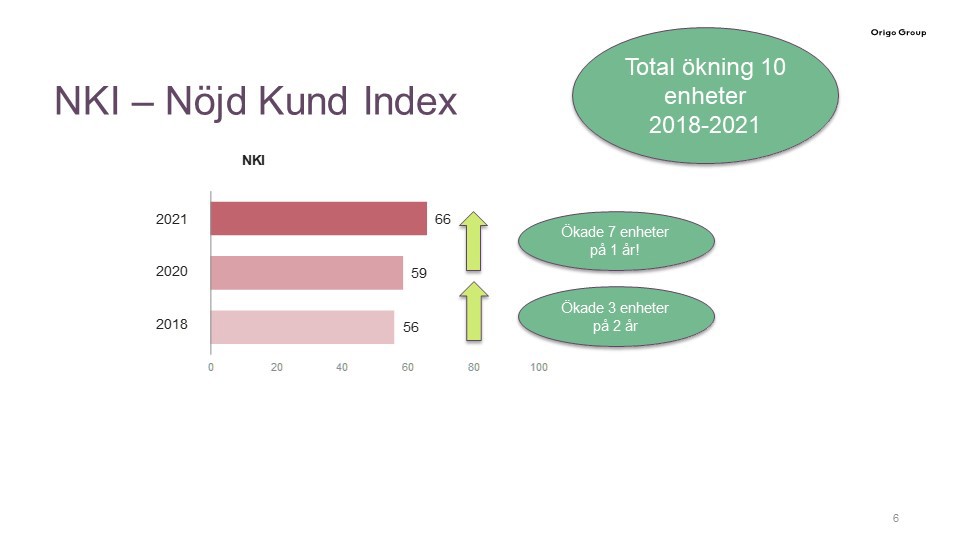 I årets undersökning visade det sig att Skolfastigheters totala kundnöjdhet (NKI) uppgick till 66, vilket innebär en ökning från 2020 års resultat, då det totala NKI-värdet uppgick till 59. Ungefär sex av tio kunder är totalt sett nöjda med Skolfastigheter, medan andelen negativa eller delvis missnöjda har minskat.