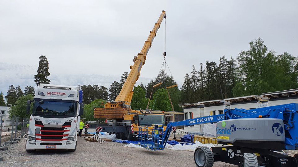 Arbetet flyter på bra och alla moduler står nu på plats. När allt står klart för inflyttning kommer modulskolan att kunna välkomna 210 elever och innehålla ett mottagningskök. Planerad inflyttning för verksamheten är till höstlovet 2021.