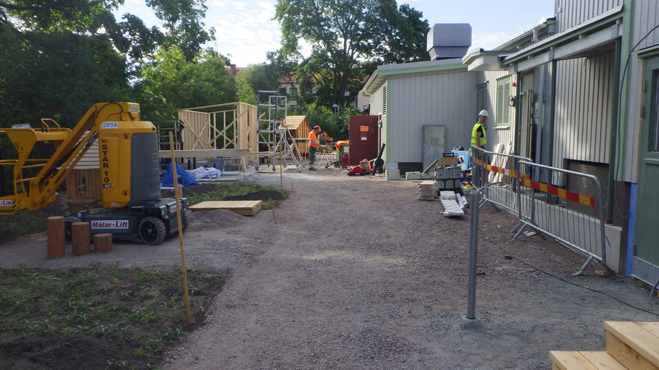 - Ny pergola byggs över sandlådan på Ringarens förskola.