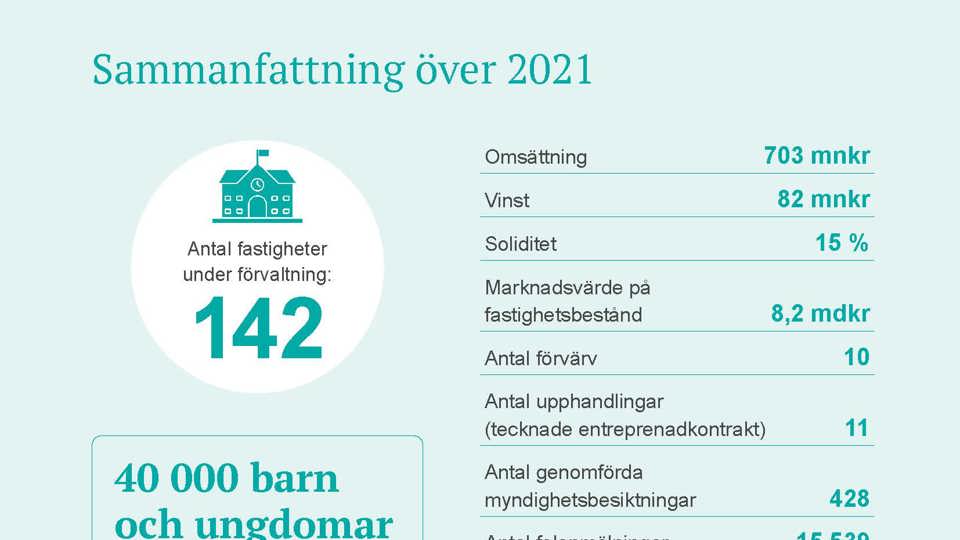 - Under det gångna året har Skolfastigheter bedrivit omfattande underhåll av fastighetsbeståndet, samtidigt som vi tagit viktiga steg i våra byggprojekt av nya förskolor och grundskolor och fortsatt att utveckla bolagets energi- och miljöprogram. //Mikael Carstensen, vd Skolfastigheter