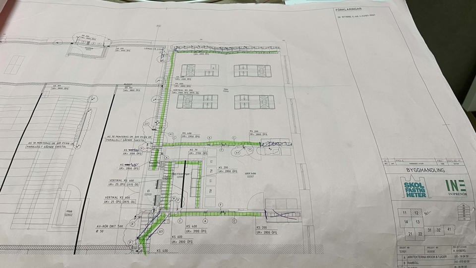 Utvändigt pågår fortsatt aktivitet med fasaden, markarbeten utförs invid Askbanan (gång- och cykelvägen mellan Treklangen och vårt bygge) och vi jobbar också med att färdigställa skolgården. Vi genomför kontinuerliga besiktningar på arbetsplatsen och har så långt positiva resultat.