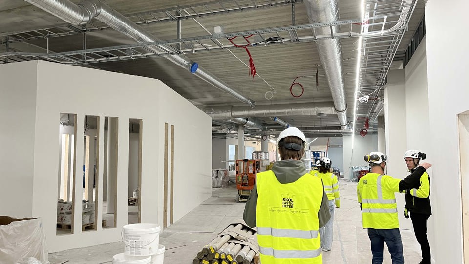 Tidsplanen för färdigställande av skolan i tid till höstterminen 2024 är fortsatt i fas, men en del arbeten kommer att pågå under kvällar och helger framöver för att vi ska kunna upprätthålla tidsplanen.