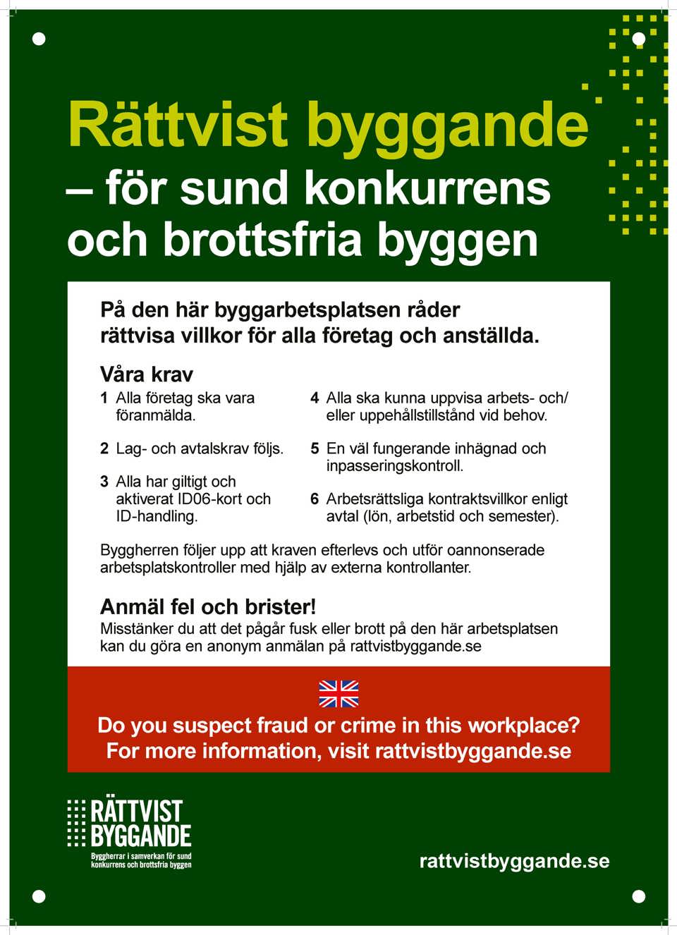 Engagemanget för rättvist byggande kommer att skyltas i de entreprenadprojekt som medlemskapet omfattar (se bildexempel nedan). Inom kort kommer skylten sättas upp vid fastigheten Ellen Fries gymnasium, där Skolfastigheter just nu arbetar med en helrenovering av skolans äldsta byggnad (Magdeburg).