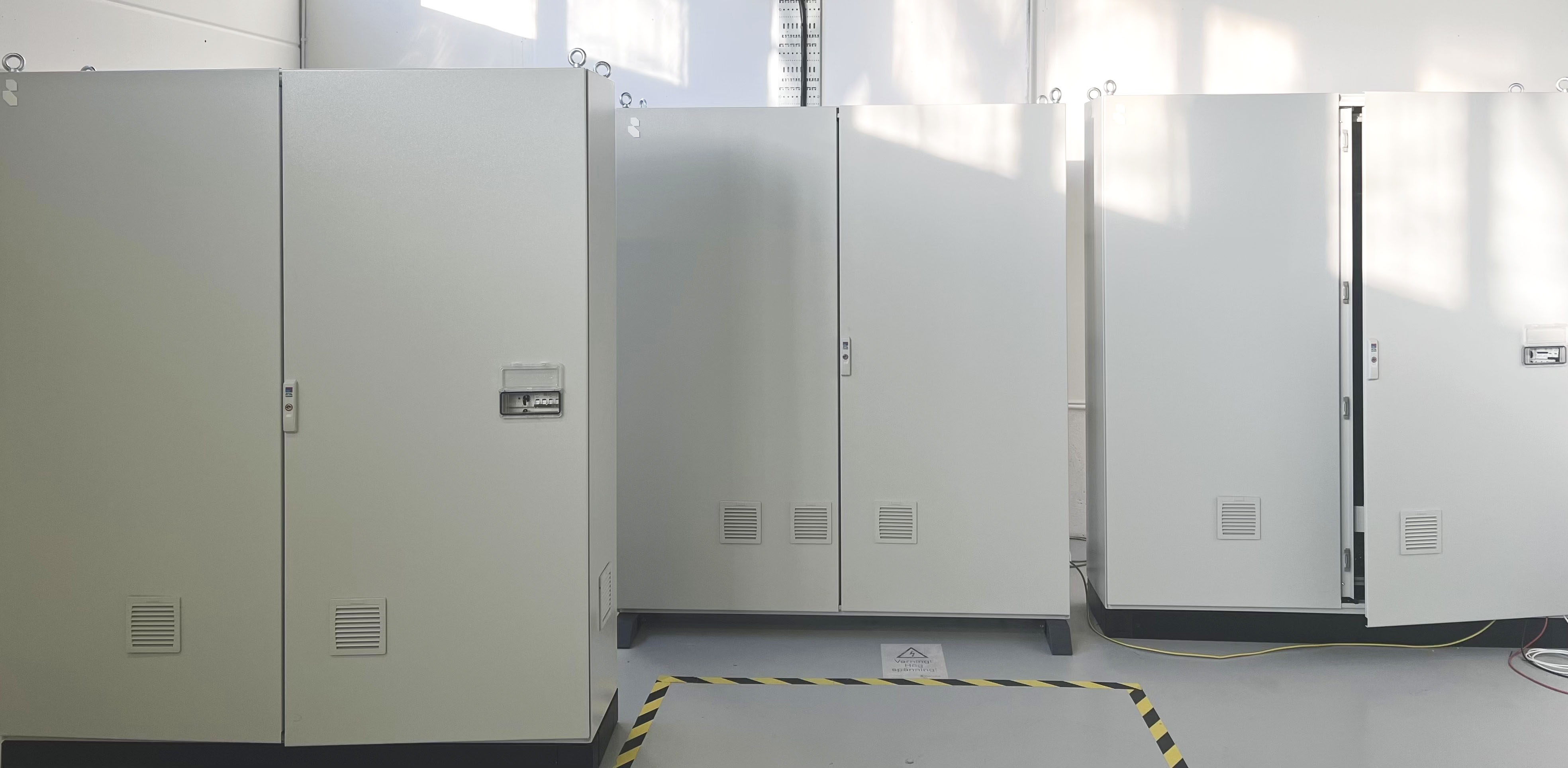 (bilderna visar nymonterade solcellsanläggningar på Kvarngärdesskolan, helrenoverade Björkvallsskolan samt skåp där batterilagring tillämpas (foto: Rebaba)
