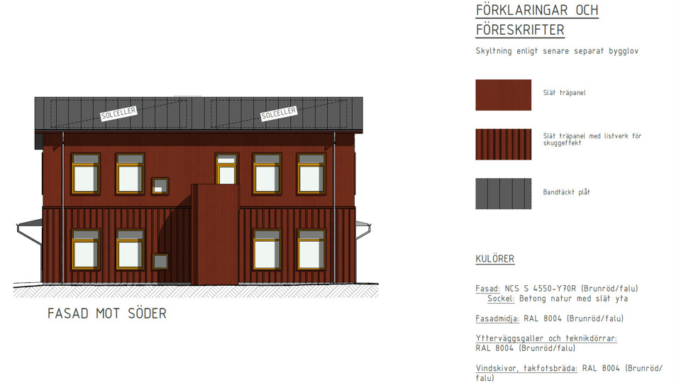 Huvudbyggnadens tak kommer följa landskapet och gatans backe upp mot söder, vilket i sig skapar ett optimalt läge för den takmonterade solcellsanläggningen som ska ge stöd till förskolans energiförsörjning.